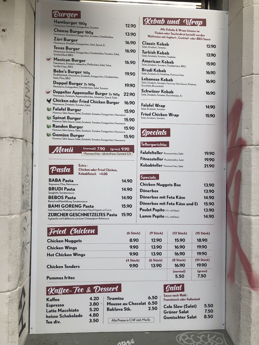 “ This is one of the best places to eat in Zurich. We discovered it by chance because it was already late at night. I can highly recommend the chicken tender and fries. Simply divine! Also the burgers are good and they offer kebab too. The staff is very friendly and the place and toilets are clean. I like that you can refill the ketchup by yourself. Keep up the great work! ”